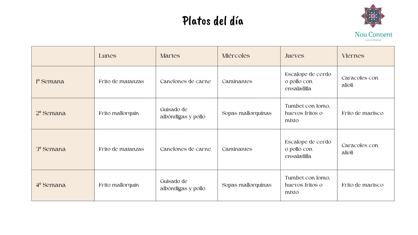 During the week we offer daily dishes of the day of Mallorcan cuisine and these are published in our channels of diffusion.