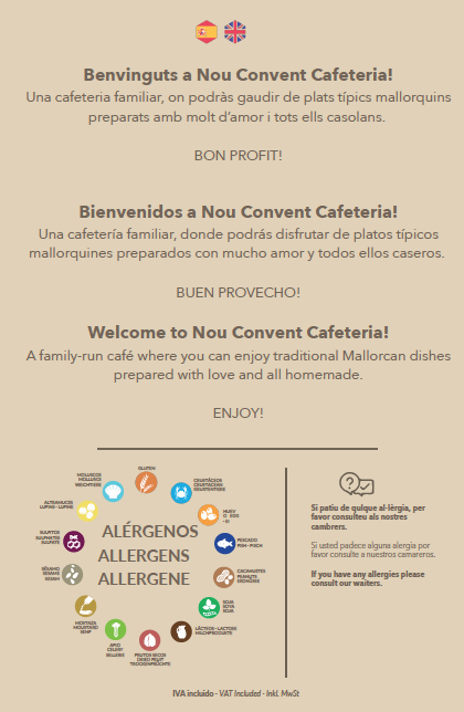 Una cafetería familiar, donde podrás disfrutar de platos típicos mallorquines preparados con mucho amor y todos ellos caseros.